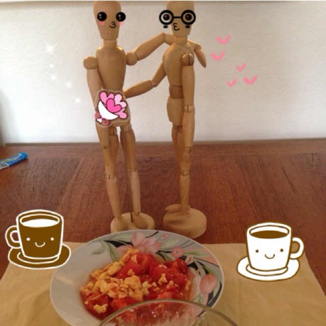 西红柿炒蛋 很少做这个 烧好发现没放盐。。算了,偶尔清淡定也没什么不好啦(-_^)今天是钢钢第一次送花给牙牙~~菜什么的都不系重点。。。