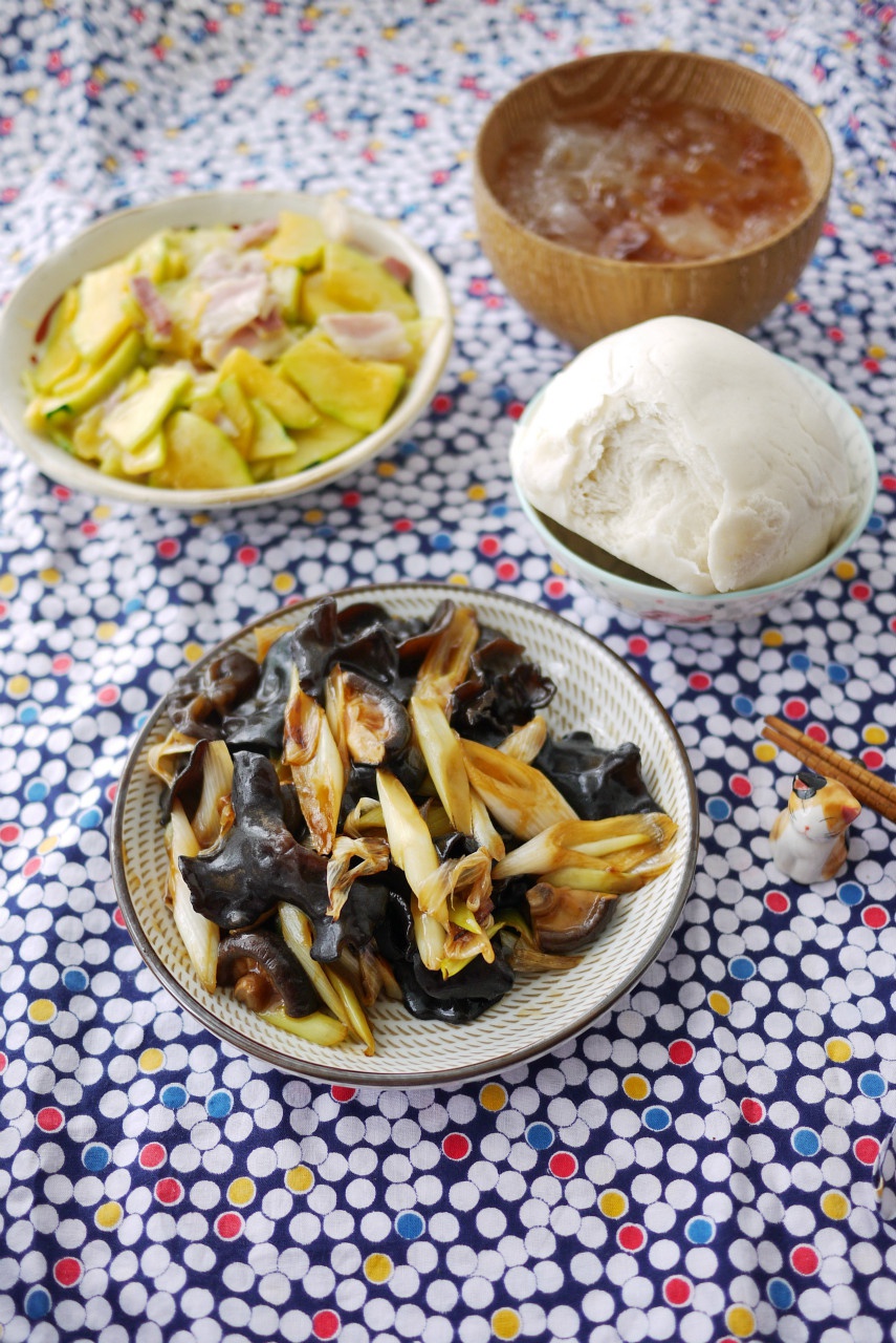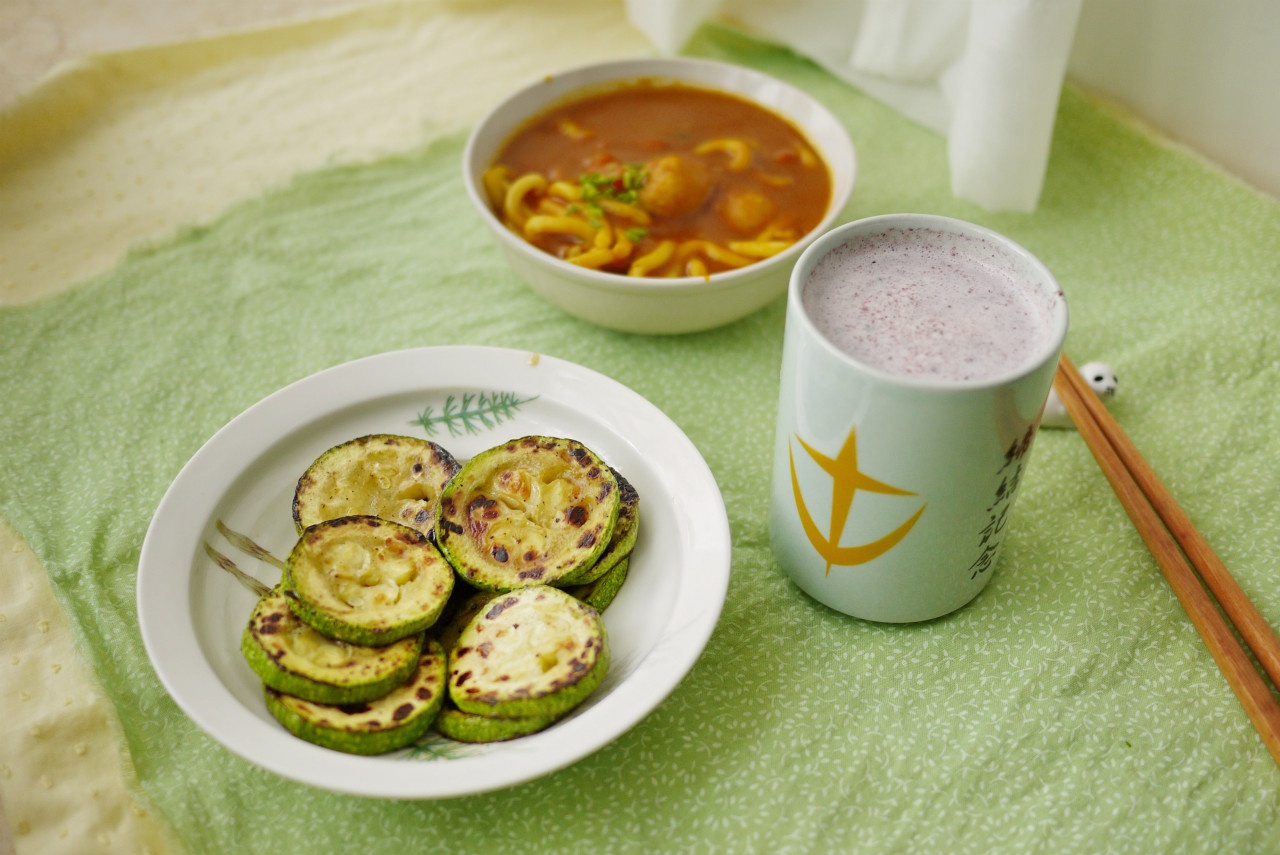 煎西葫芦,黑米椰奶和咖喱乌冬!