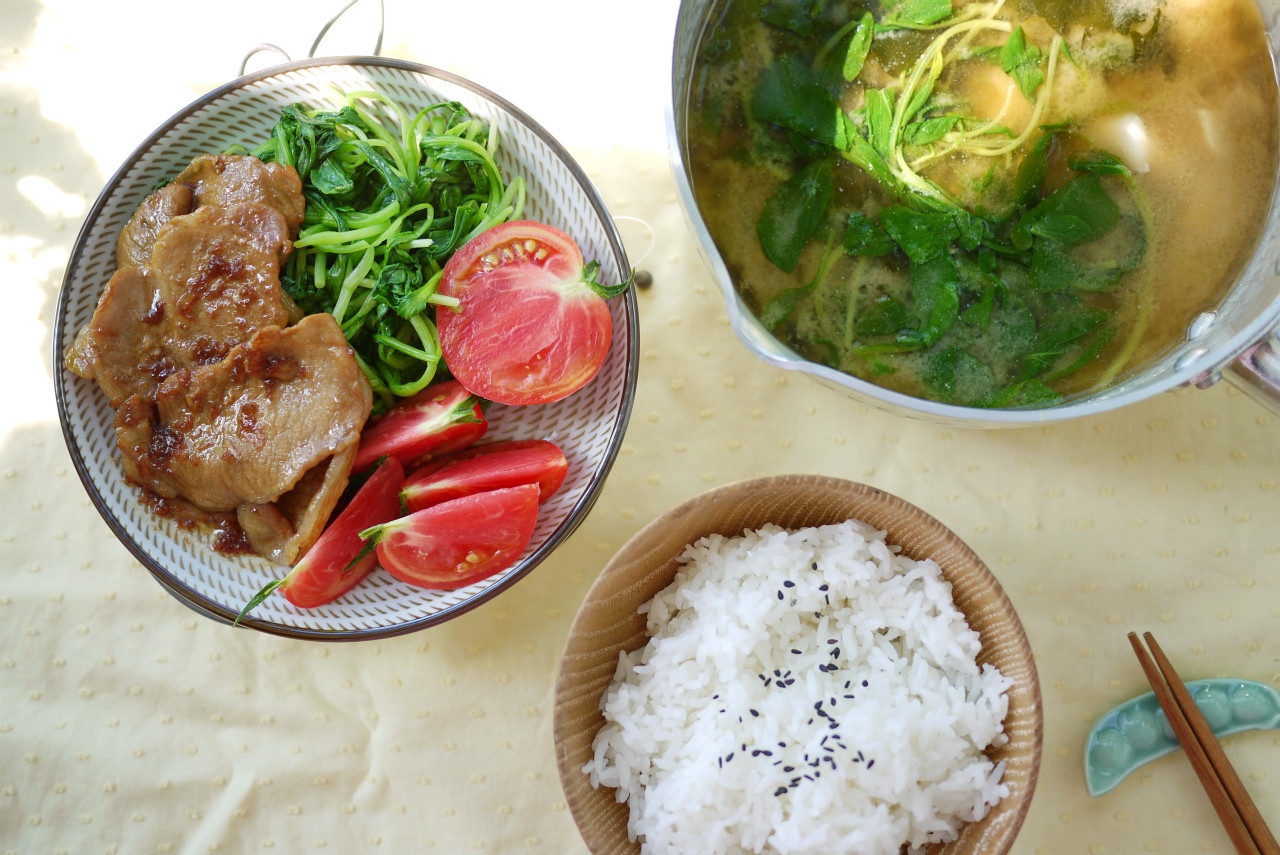 生姜烧鸡毛菜味噌鸡毛菜汤!这次买了生姜烧专用猪肉好吃很多!看上去就像薄切大排但我切不到那么薄T3...