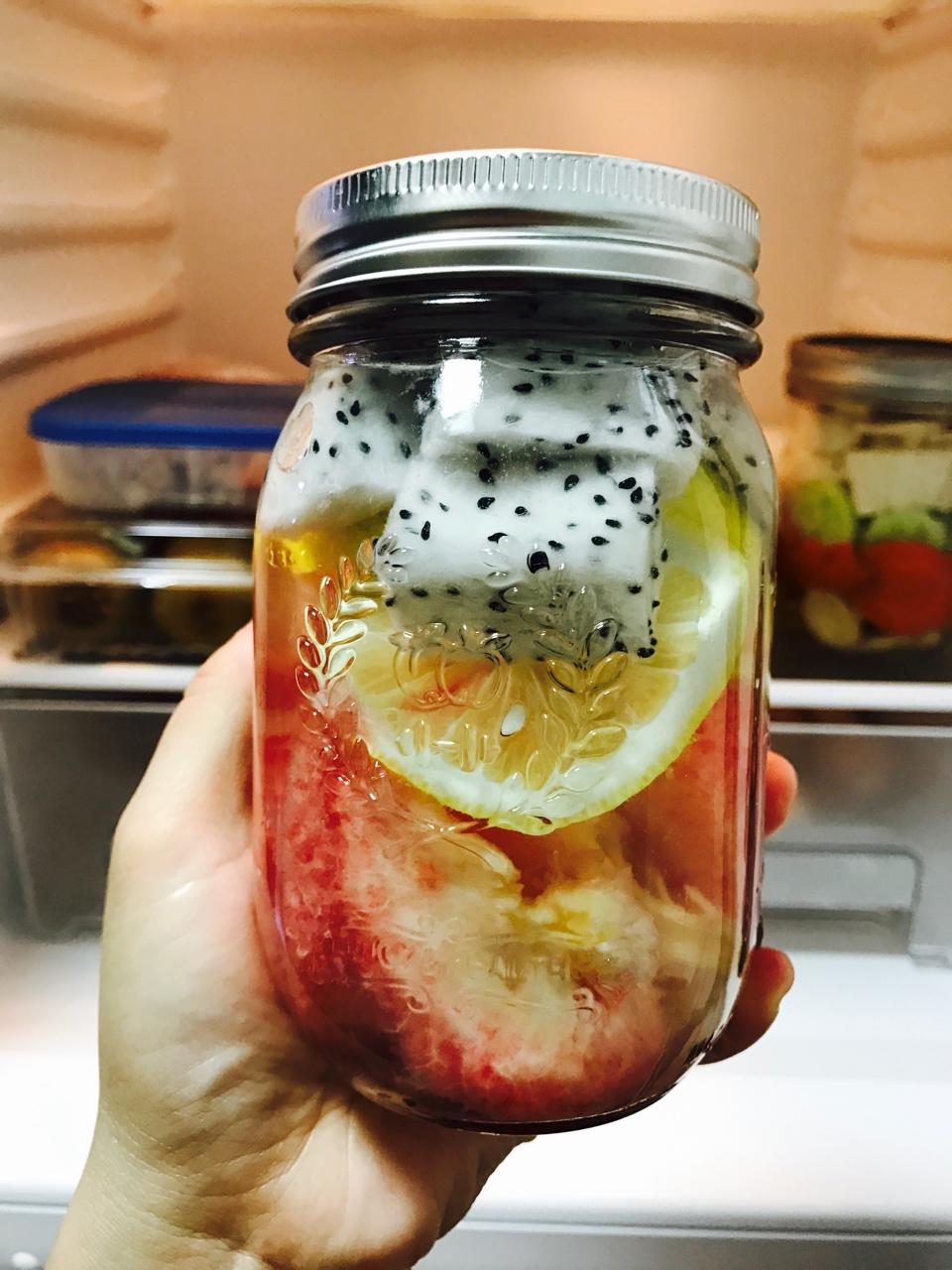 苏打水,水蜜桃,绵白糖,冰箱一夜