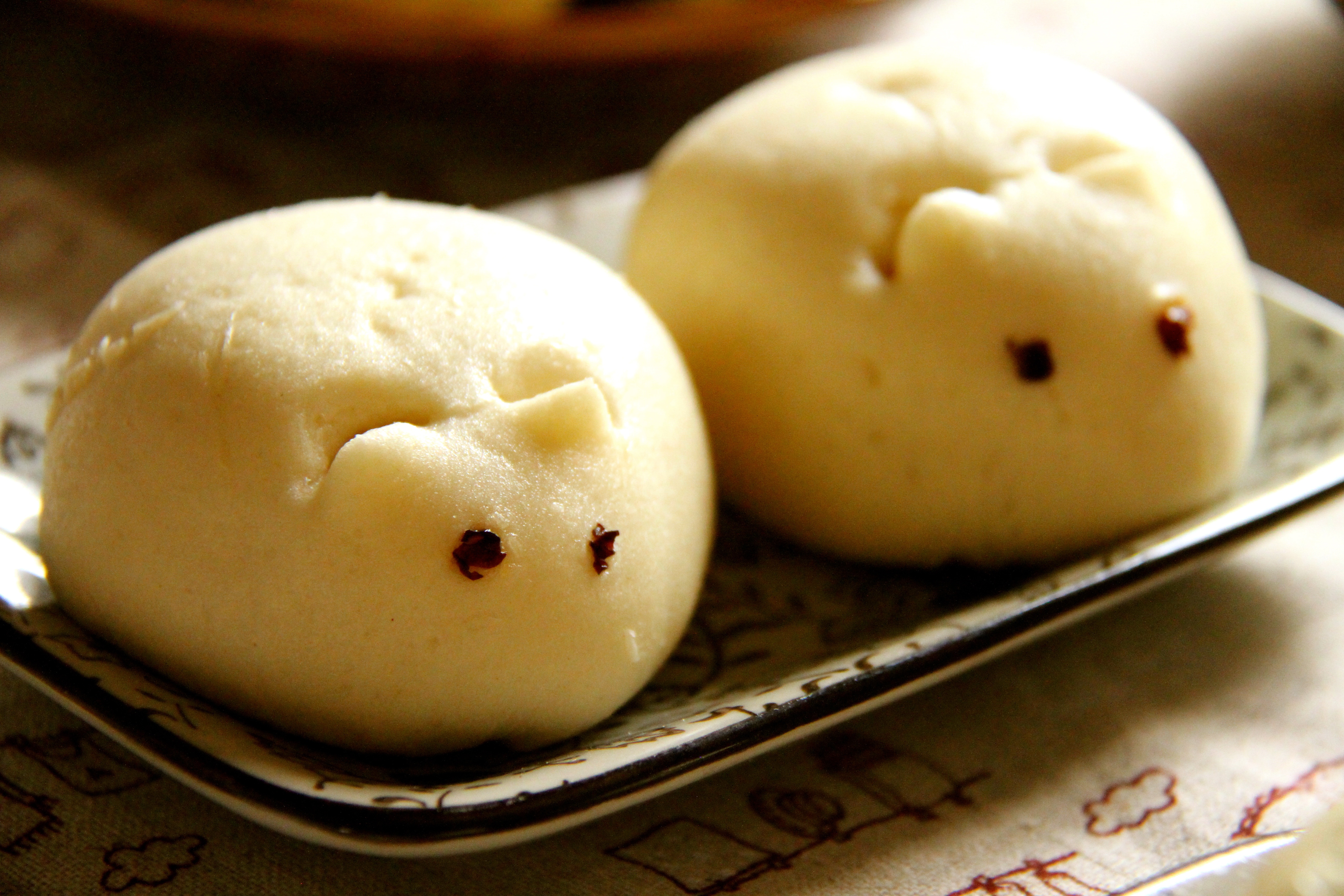 不能再爱普通的包子了~ 奶黄包做了兔子样的~( ̄▽ ̄)