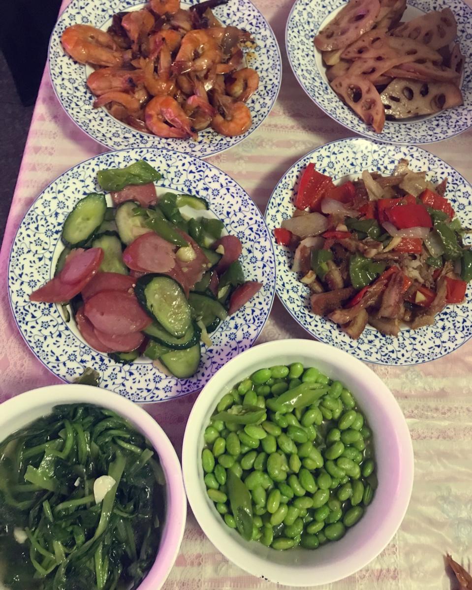 给妈妈和哥哥做的饭,第二次做虾,味道不错。一直都是妈妈做饭给我吃,有机会做给她吃感觉挺好的