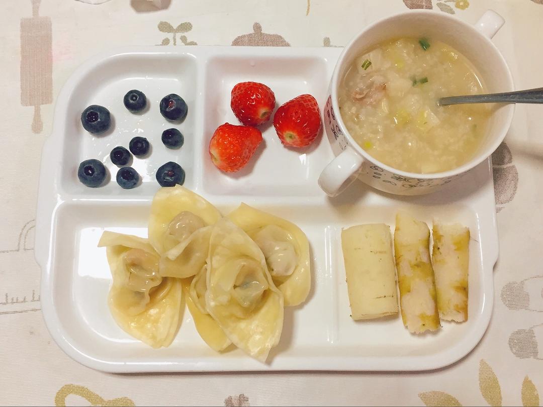 12月25日(星期三)早餐:排骨山药粥,+蒸饺+蒸山药+草莓+蓝莓