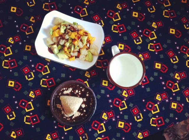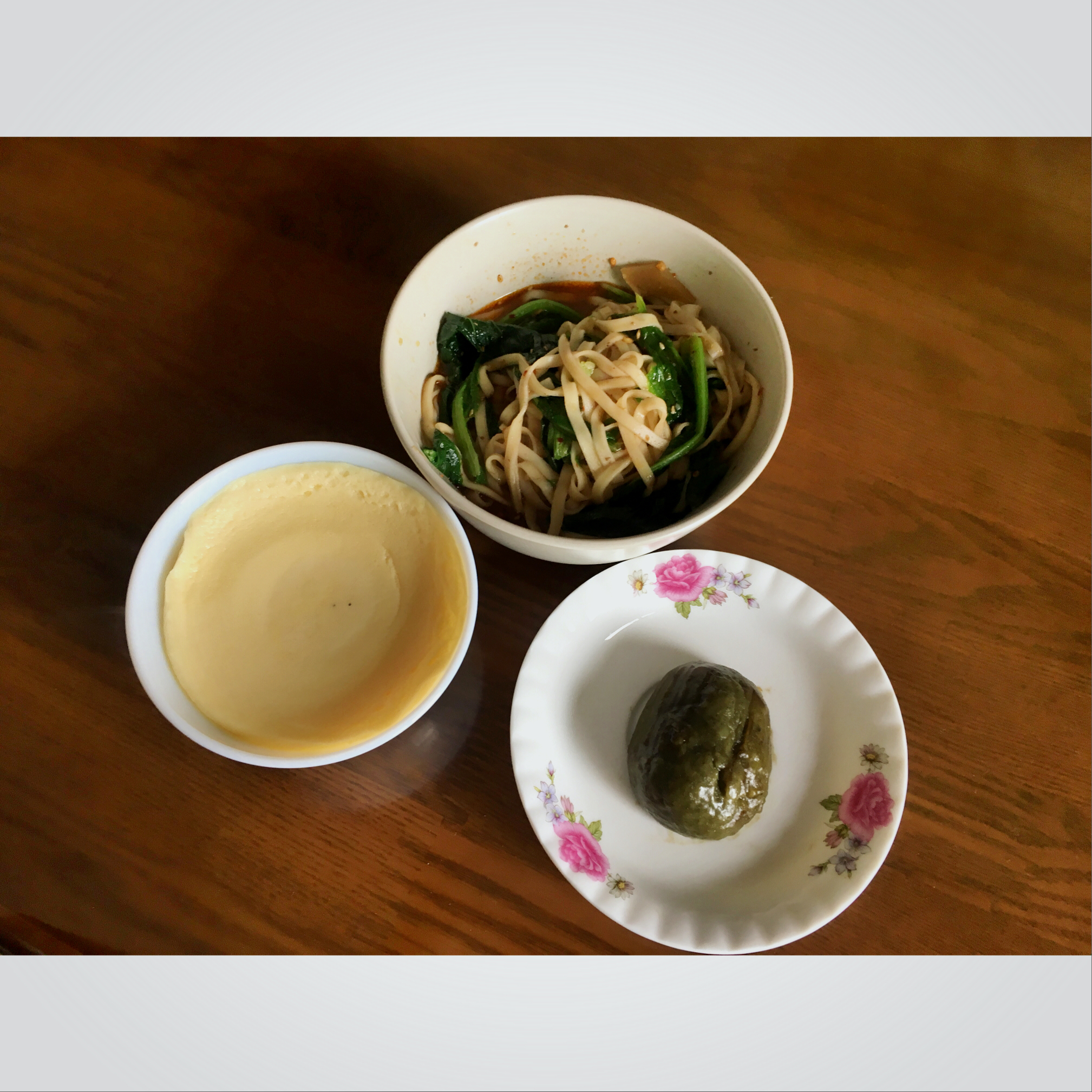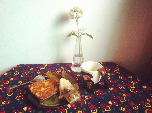 蒸得超失败的牛奶鸡蛋,自家做的青蒿糕,猪肝面……已经撑到有点想哭,转眼看到还有一杯牛奶。