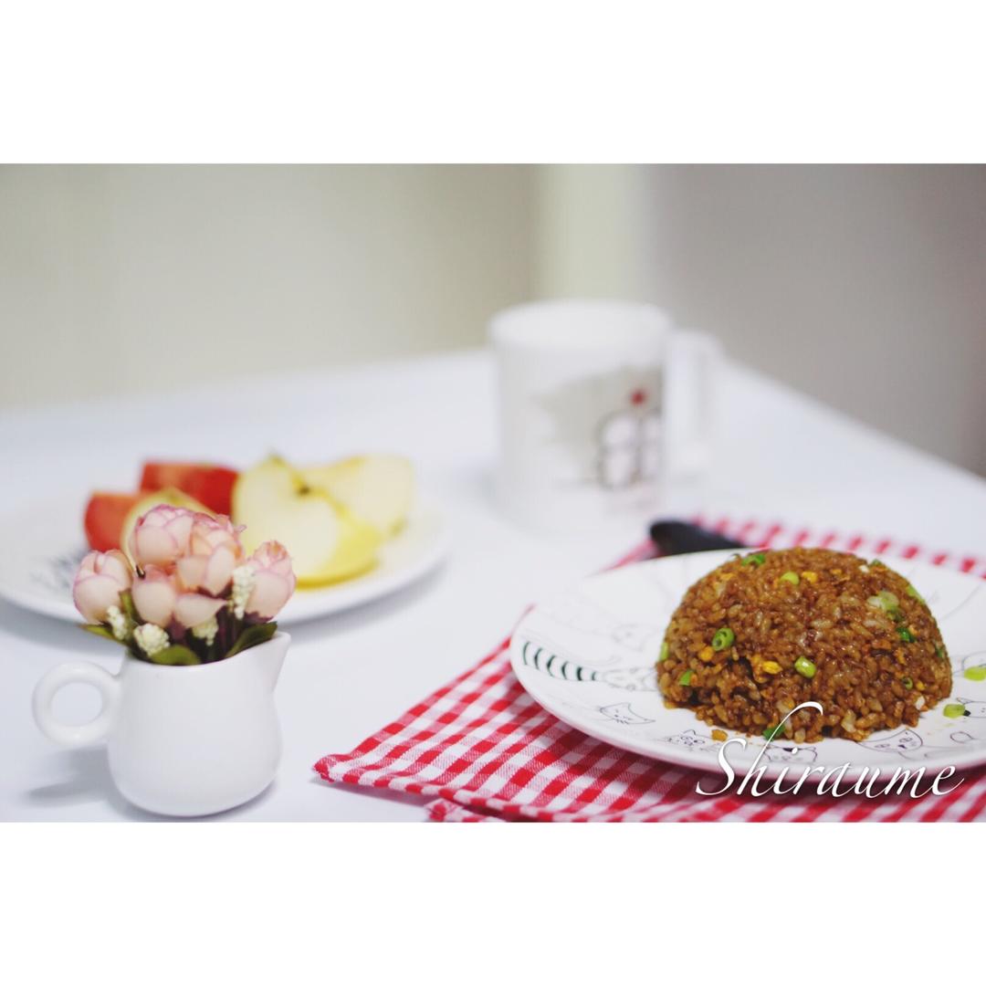 酱油炒饭🍚苹果🍎西红柿,牛奶