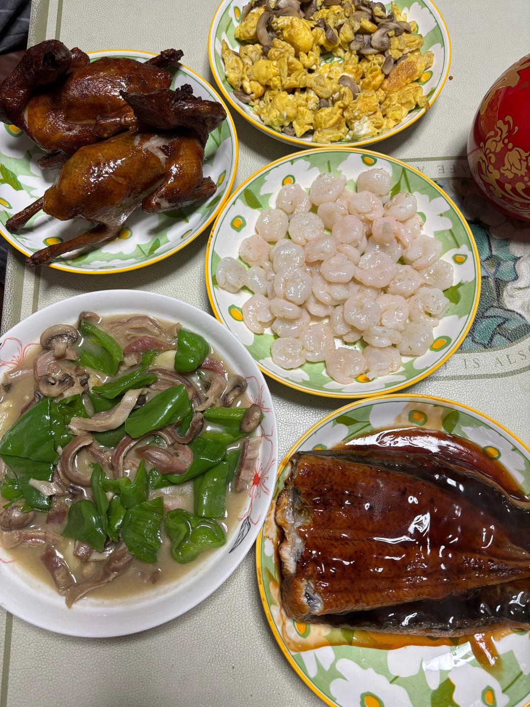 脆皮乳鸽、青椒肚丝、口蘑炒蛋、