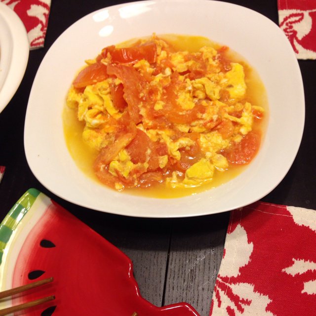 放了一点点糖,番茄的汁水也特意都留着,好好吃!嘻嘻
