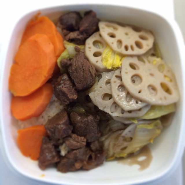 白菜炒藕片 烧牛肉 蒸地瓜