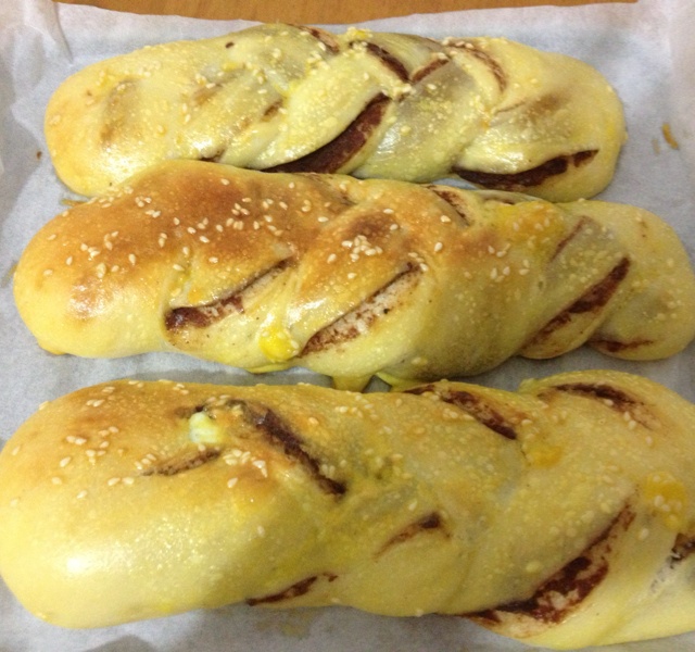 明天早上的早歺,这次的面终于发起来了。没黄油了,用色拉油代替的,也没放牛奶,因为用面肥发的,...
