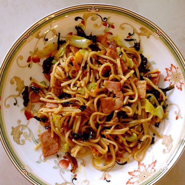 快手炒面超方便啊!!!面条再煮硬一点就好了,下次试试通心粉〜
