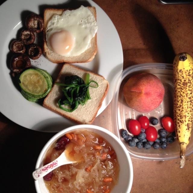 周末早午餐,一周中最幸福的时刻!!早上没吃饭先去超市买好了下一周的粮食,回来把三个西葫芦...