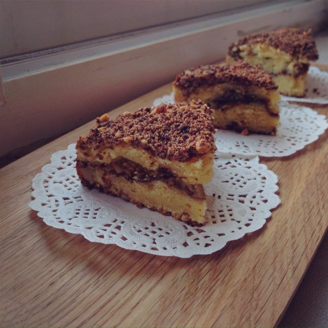 最近长了一颗想做蛋糕的心!!咖啡、核桃和酸奶每个都是我的爱就选了这个开刀~减半做的六存模...