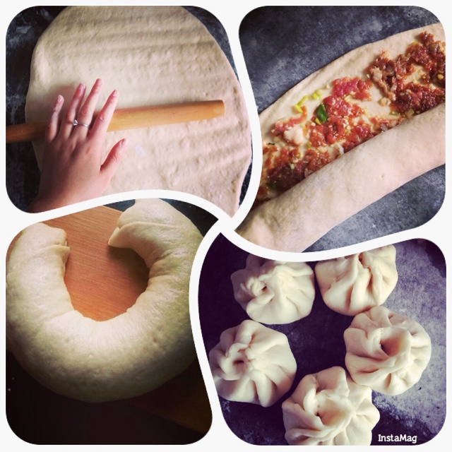 早上在爸妈和儿子起床前开始忙活,做了大大的肉龙,多余的小面团做了五个包子~超赞~