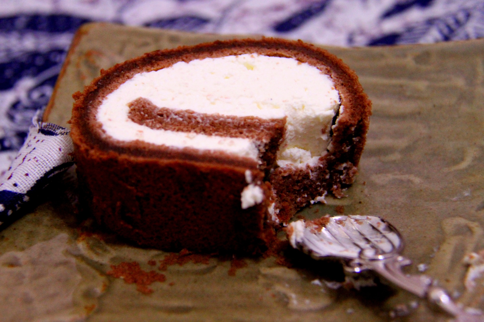 蛋糕体已经切了一点了发誓要弄O型卷,结果O到一半奶油还是波够!和卷王的黑可可完全是两个物种...