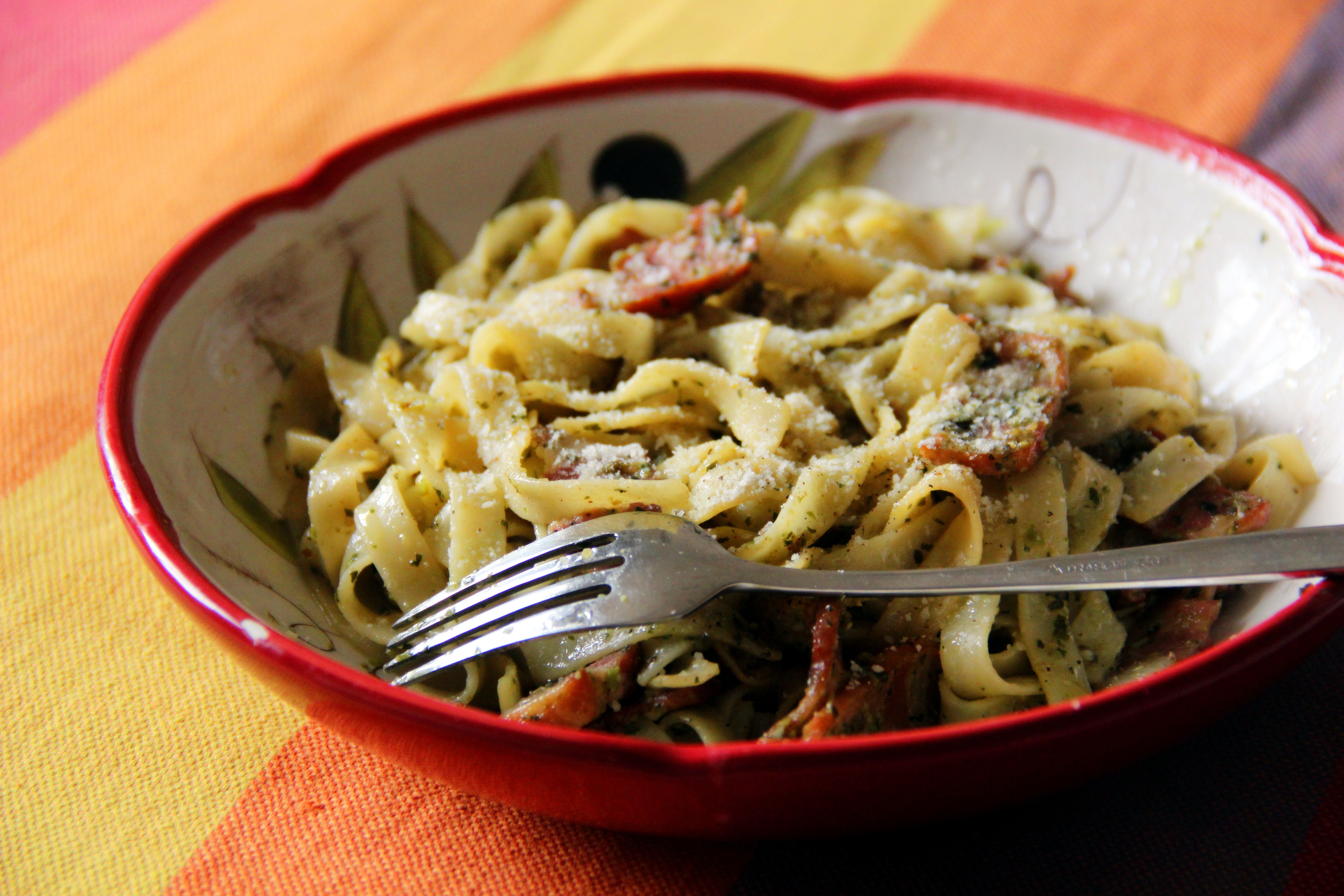 比较偏爱的一种意面,颜色翠绿口味清淡,还配了些口蘑。昨天做了好多青酱快吃快吃!#LOVE...