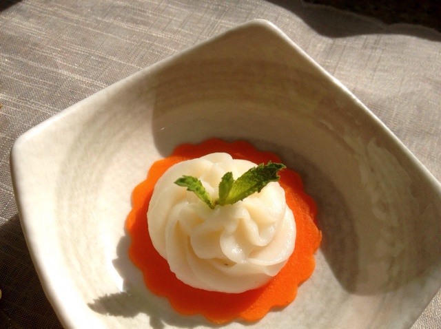 山药泥里加了少许炼乳,吃的时候淋了蓝莓酱,拍照的时候为了死小清新什么也没加哈!