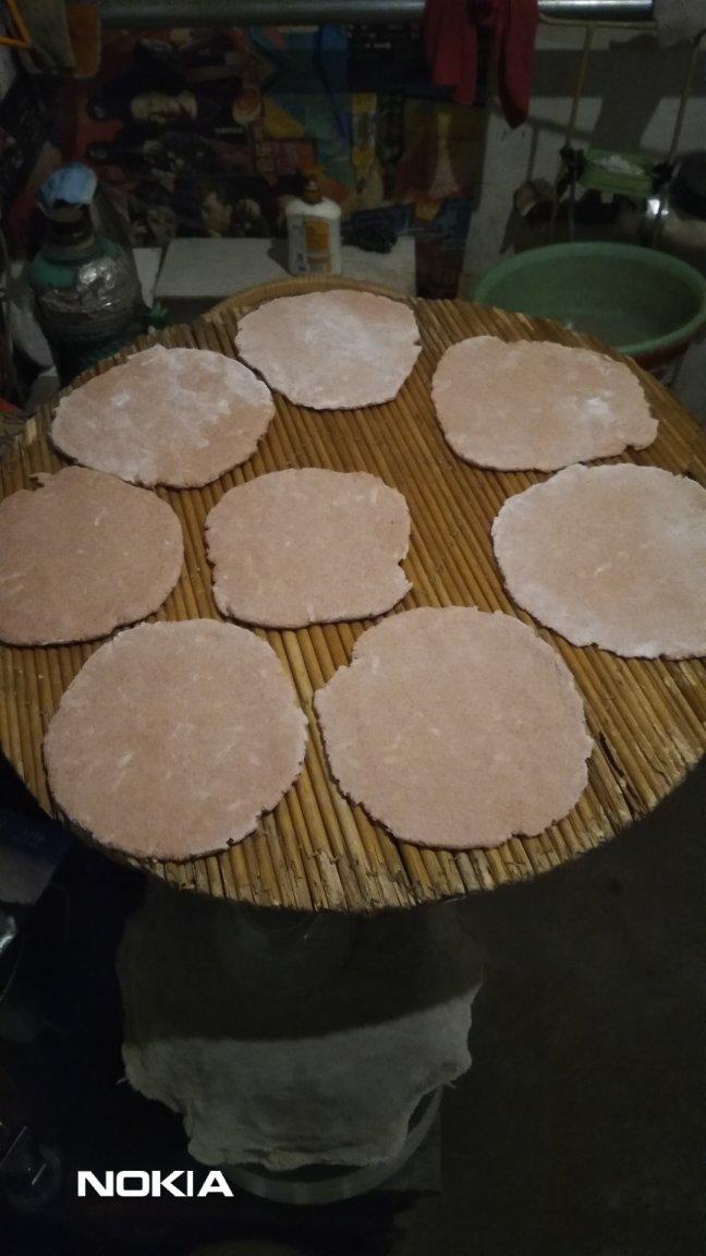 记录生活,原料是豆渣还有一杯高粱面和一杯荞麦面,还加了点芝麻酱和图片上的小瓶里的调料,还有一把黑芝麻😄