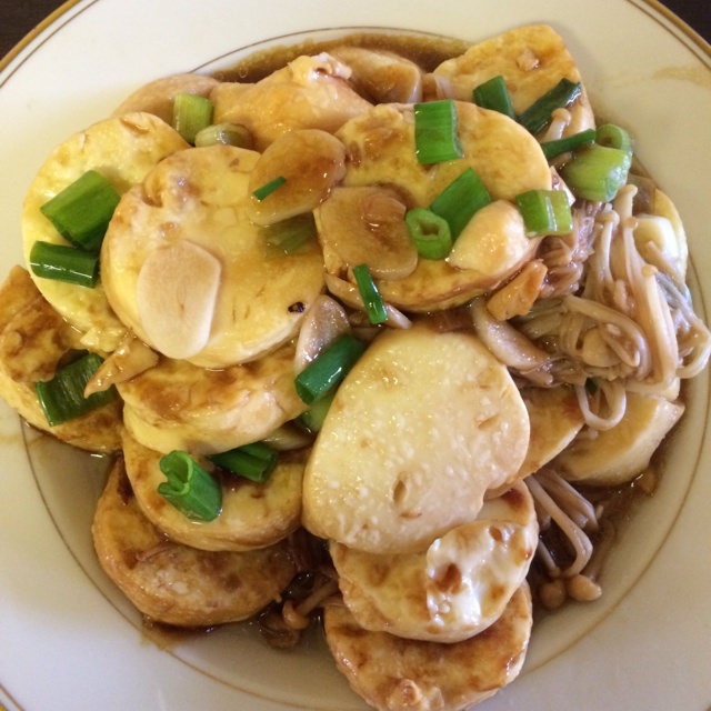 没有蚝油,直接用的老抽和生抽。煎豆腐是个细致活,容易碎。味道不错,下饭!