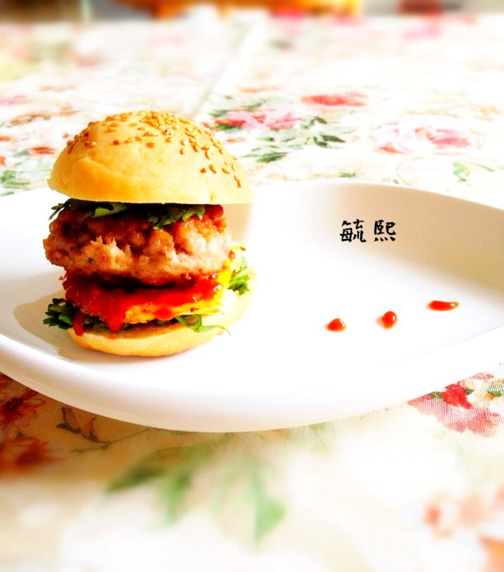 罗勒猪排汉堡。汉堡胚也是自产自销的。好满足