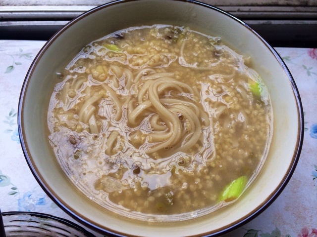 这碗粥对食材有着严格的要求,小米必须是新鲜的糯小米,这样才能熬的黏稠,挂面也必须耐煮,不然煮化了糊在锅...