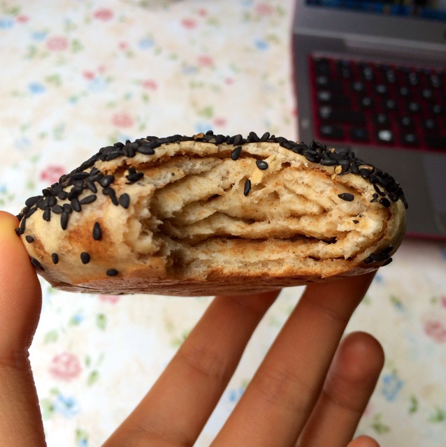 河南永城的肉盒,有牛肉的,韭菜鸡蛋的,粉条的。也和豆粥非常搭配。
