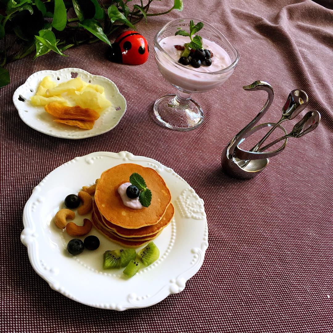 猫宁🌹早餐跑D12天赛程过半继续努力下去😊:香蕉松饼、蓝莓酸奶、果干