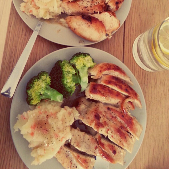 老公做的煎鸡胸,土豆泥,西兰花≧﹏≦哦一系~\(≧▽≦)/~