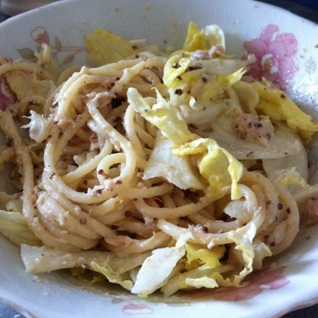 没有通心粉,用的意面。用脱脂沙拉酱和粗粒黄芥末酱,其他是罐头金枪鱼和生菜。个人脚着味道还可以,比之前单纯用沙拉酱丰富了一...