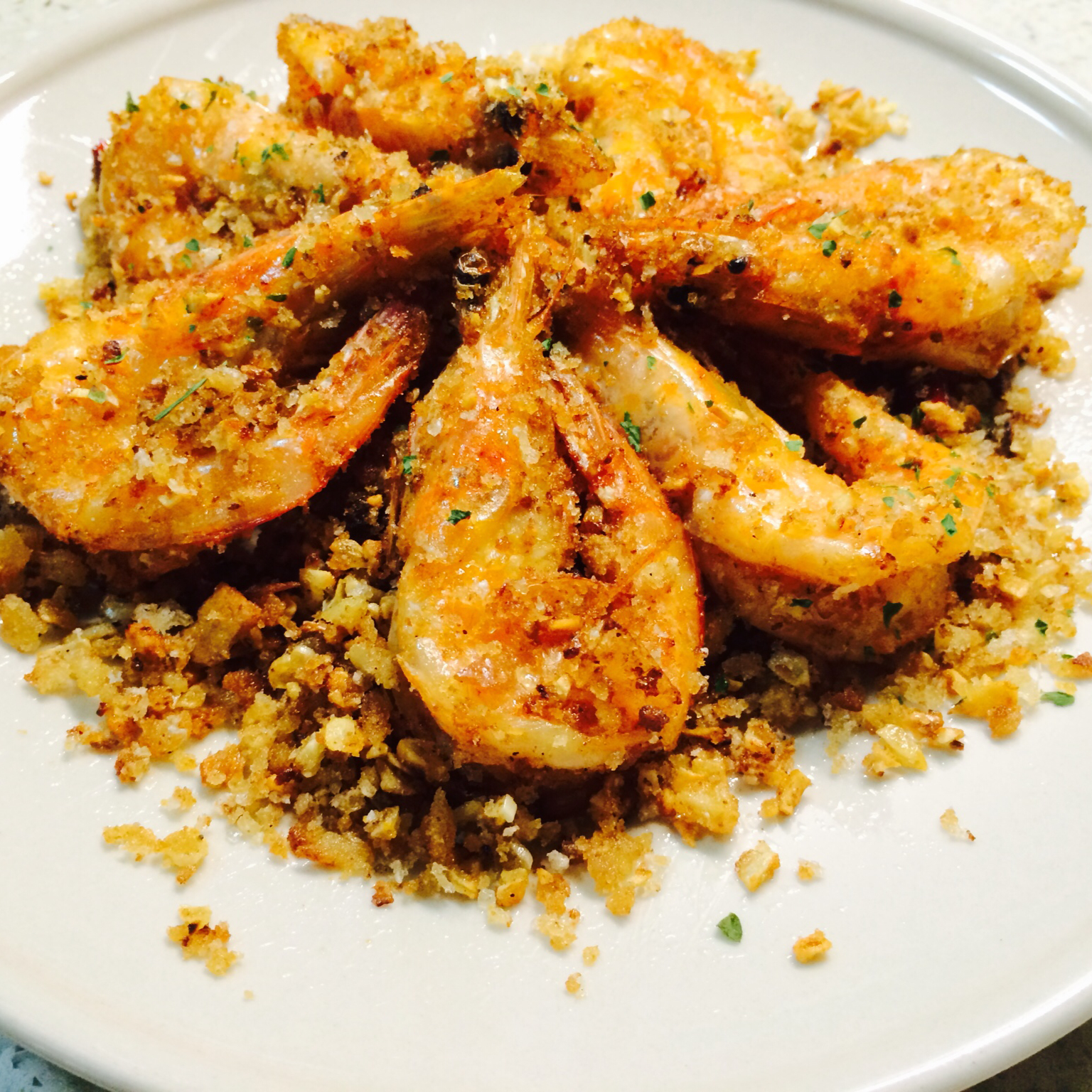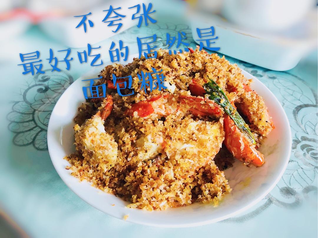 没有面包糠🍞用面包撕碎做的。虾开边了更好吃。买的沙虾。