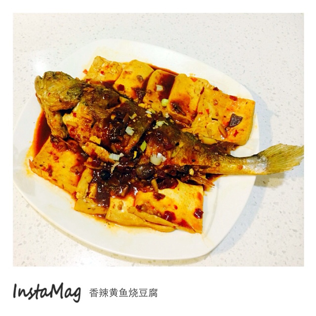亚洲超市买了冰冻的黄鱼,挺便宜,豆腐浸了汤汁儿,实在好吃!黄鱼肉也鲜嫩,端碗,吃饭啦!