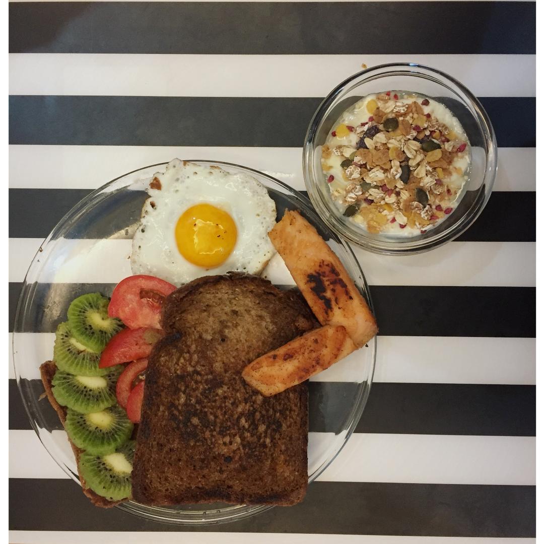 无油香煎三文鱼➕自制酸奶拌麦片低卡早餐,好好味吃到撑!