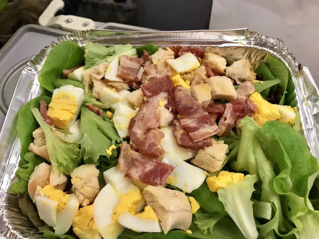不用油煎的培根🥓和鸡胸肉色拉,杂粮贝果,中间没有夹黄油条的全麦盐面包