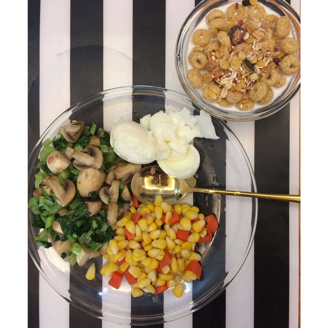 鸡蛋白拌炒杂蔬➕牛奶麦片
