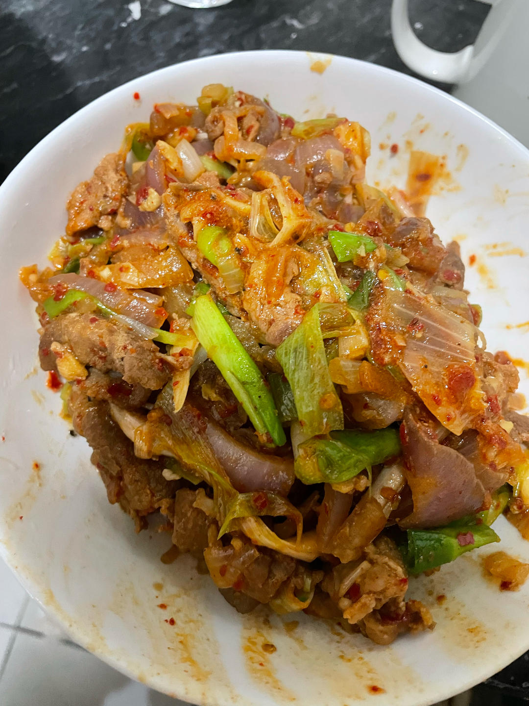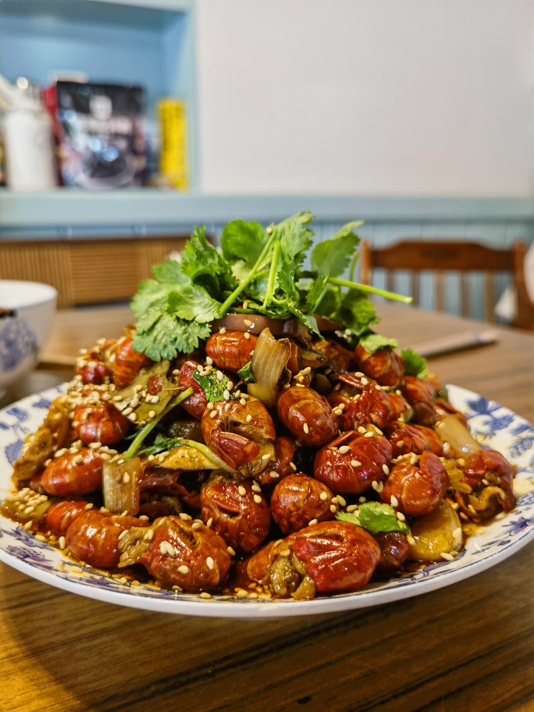 好好吃!!!三斤虾尾做了2次。第一次解冻后再焯水,第二次直接下开水焯水再冷水冲,口感差不多,但快!下了2小勺豆瓣酱+一小...