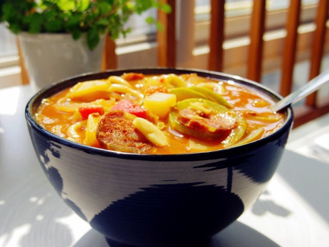 用剩的红烧排骨顺手煮的,吃得出乎意料的满足~
