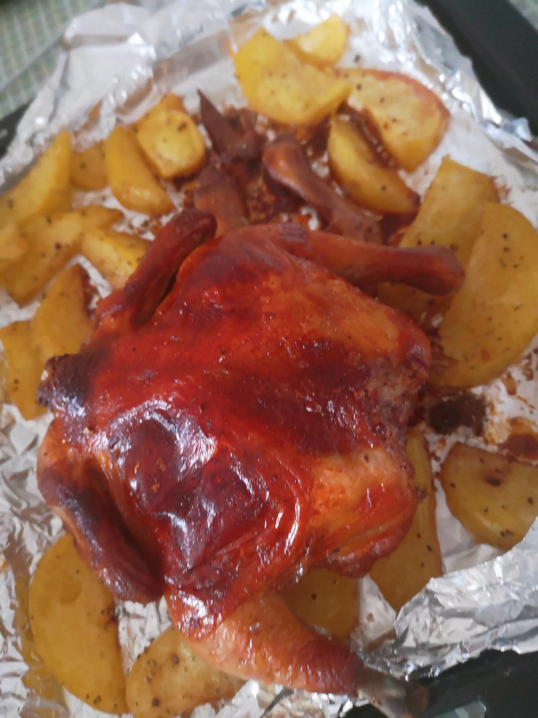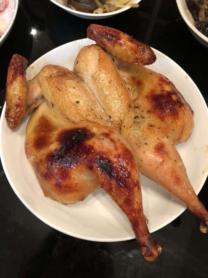 第二次烤鸡,卖相还不错,味道不知道怎么样