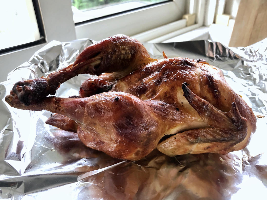 经历1天+3小时,肉嫩多汁的烤鸡终于出炉了。虽然制作耗时很长,但出来的成品值了。🤤
