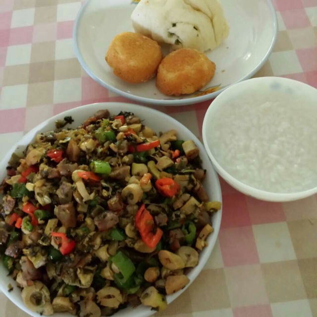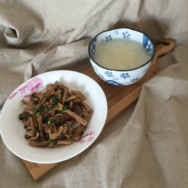 今天是小米粥+笋干炒肉