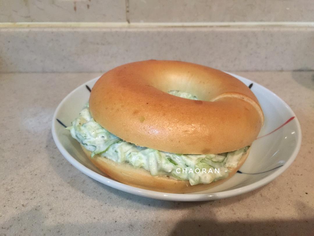 【第329天】Tzatziki 本来想配Pita饼,没有买到,突然看到Bagel,那就搭配Bagel吧!