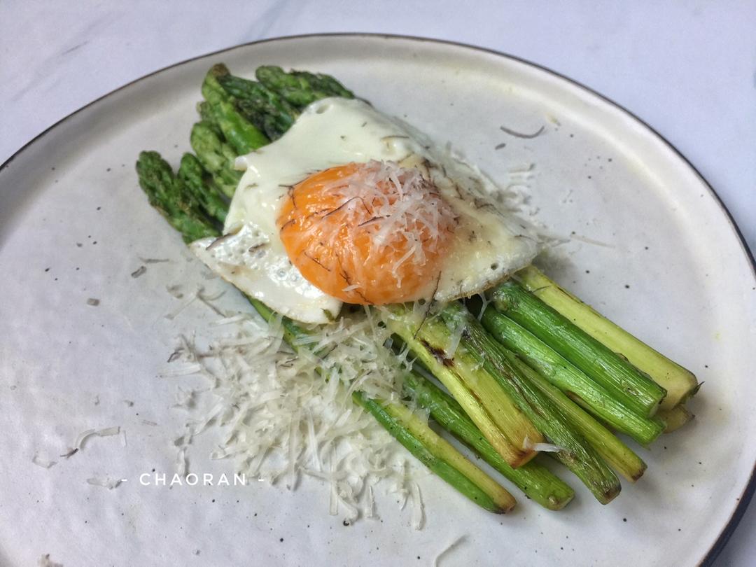 【第335天】芦笋佐太阳蛋Parmesan芝士~一个人吃早饭也要有仪式感,撒上了现磨的Parmesan芝士摆盘就美了很多...