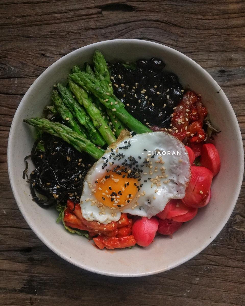 【第336天】不是斋食的Buddha Bowl ~ 韩国风味一碗端 - 樱桃萝卜、泡菜、芝麻昆布、蜜黑豆、芦笋和凉拌生章...