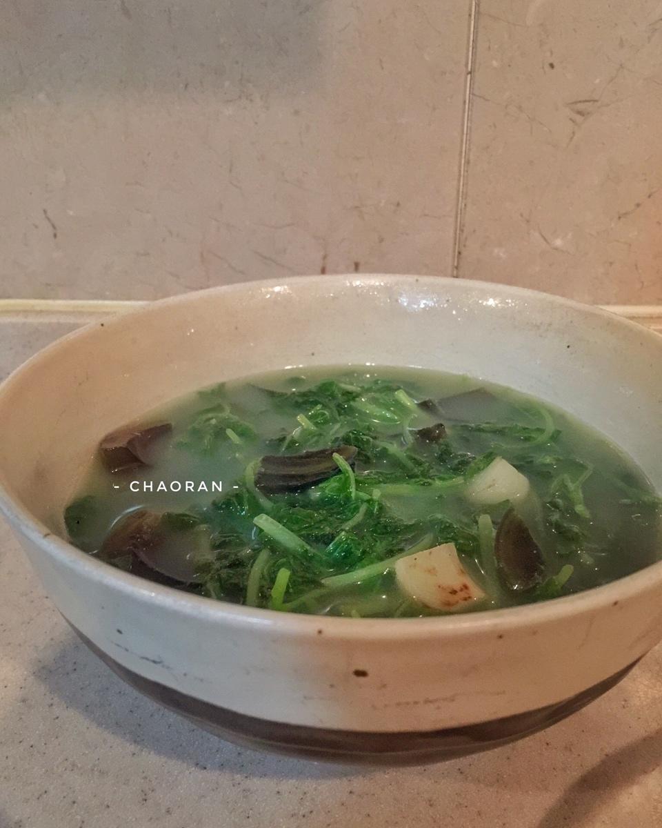 【第337天】不用肉/午餐肉,要怎么做出乳白色的汤呢?我发现用上咸蛋就可以了!先煎大蒜,然后煎咸蛋黄,倒入煮大白菜的汤,...