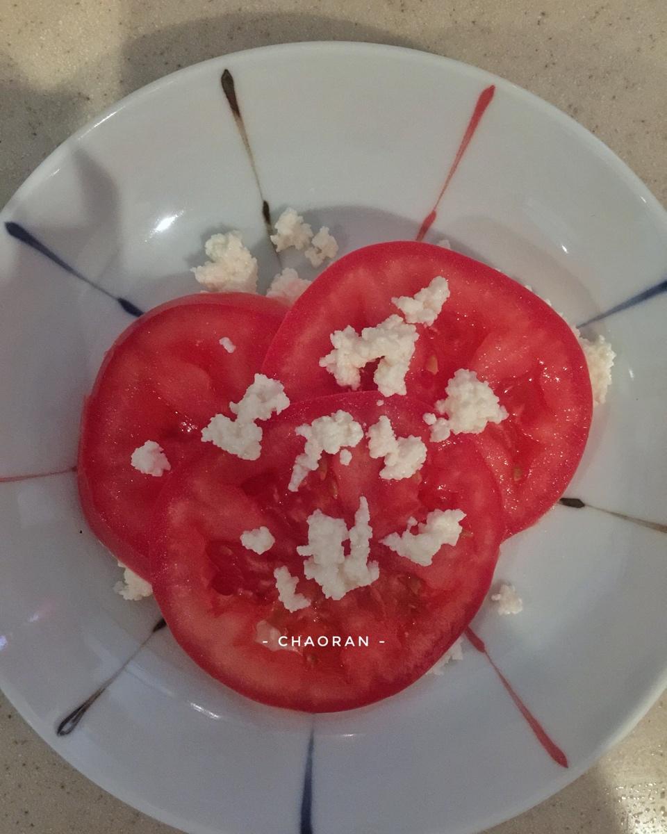 【第331天】Cottage cheese with tomato, salt and pepper. 做好的茅屋奶酪,...