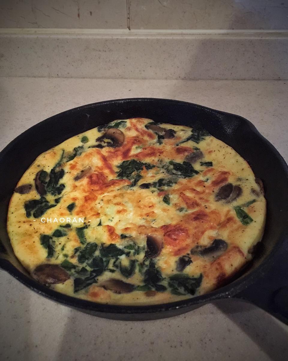 【第311天】Spinach & Mushroom Frittata 放了1个全蛋、2蛋白、全脂奶代替Cream...