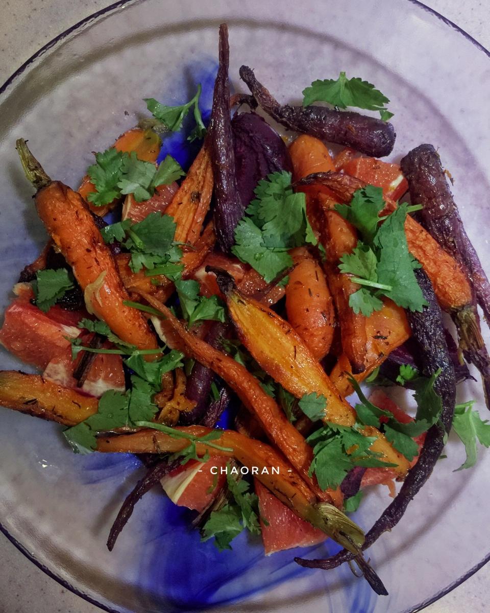 【第309天】Roasted Beetroot & Carrot 放了橙皮、百里香、橄榄油、一点点蜂蜜、白胡椒粉...