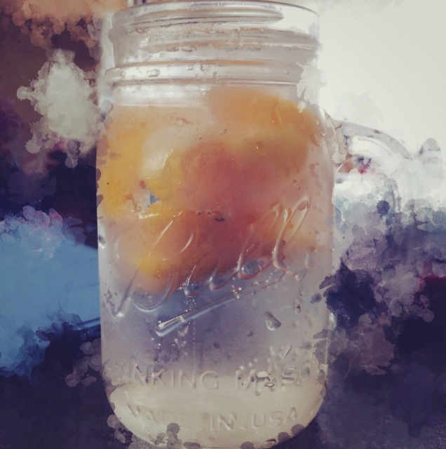 有点粉粉的哈 汁和桃子一起放在冰格里冰了 放进雪碧的时候都黏在一起了