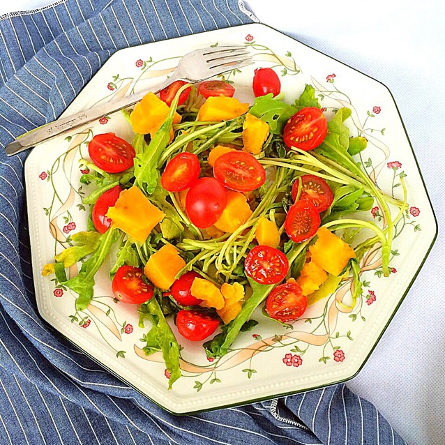 家里有红薯就放进来了,以外很好吃,挺搭的,唔。。因为红薯和小番茄特别甜。。所以我没放调料诶!健康的要哭了哈哈。。不放调料...