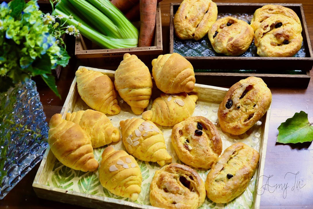 家里胡萝卜很多,用来做面包啦~胡萝卜面包非常蓬松柔软却还略带...