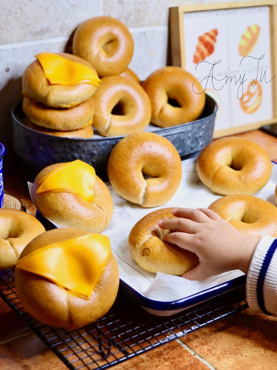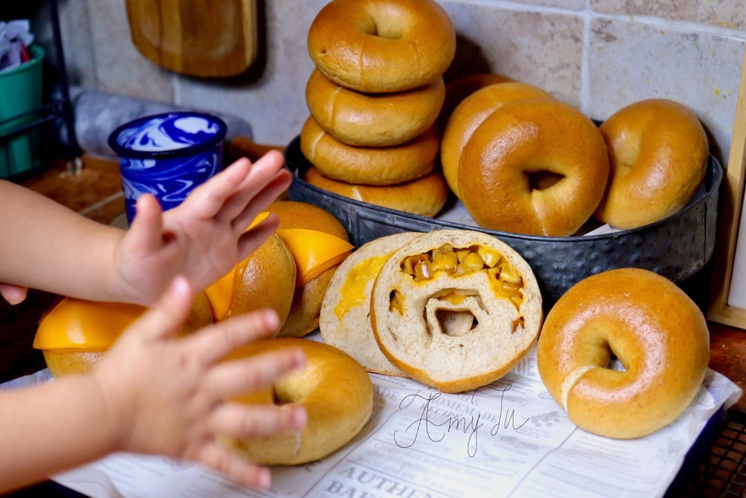 小手模喜欢拿贝果当玩具😂