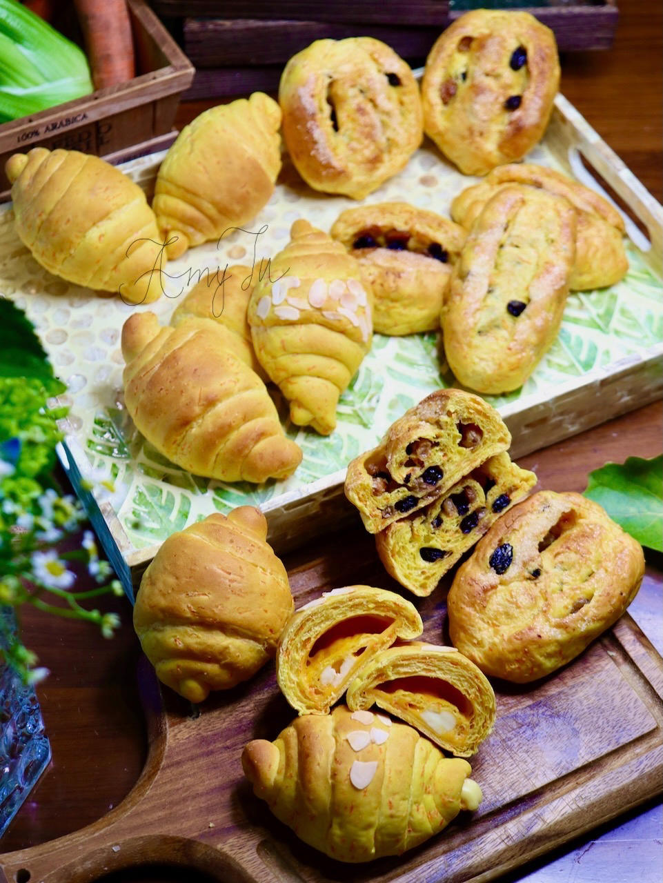 牛角里夹了奶酪 另外一种里面卷了很多葡萄干😋